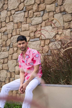 Dragon Pink Printed Linen Blend Shirt