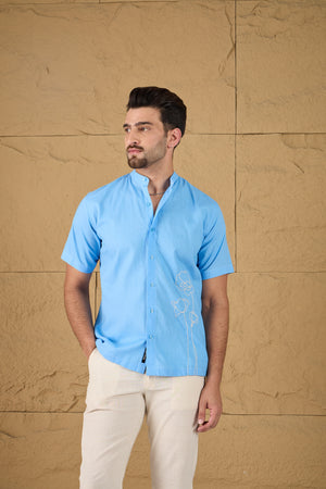 Experience effortless elegance with our Linen Embroidered Shirt, crafted from premium breathable linen. Featuring intricate embroidery, a mandarin collar, and short sleeves, this shirt combines timeless sophistication with modern versatility, making it a wardrobe essential for any season.